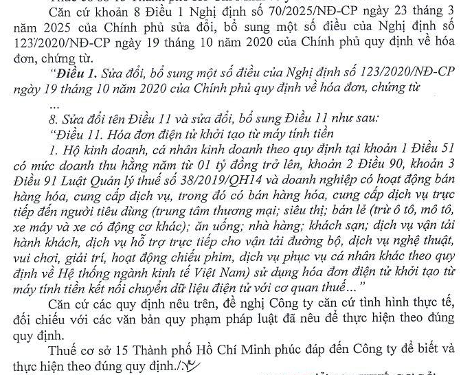 Công ty chúng tôi mới thành lập, ngành nghề kinh doanh chính là 5229 ( Hoạt động dịch vụ hỗ trợ khác liên quan đến vận tải. Chi tiết: giao nhận hành hóa; hoạt động đại lý làm thủ tục Hải quan; hoạt động đại lý vận tải hàng hóa đường biển và đường hàng không...). Với ngành nghề này chúng tôi đăng ký sử dụng hóa đơn điện tử hay hóa đơn điện tử khởi tạo từ máy tính tiền. Kính mong Quý cơ quan hướng dẫn. Xin cảm ơn.