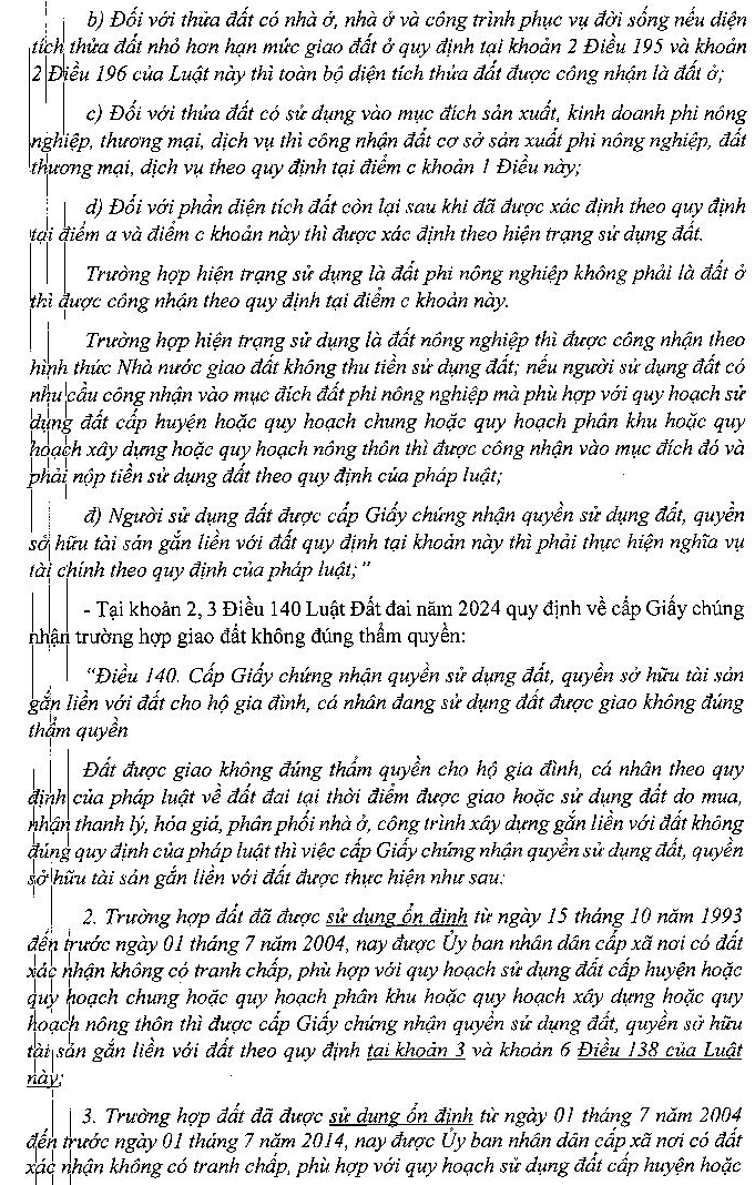 Tôi có mua 120m² đất từ năm 1998 do thôn giao bán, có phiếu thu tiền và biên bản giao đất. Tuy nhiên, sau này tôi được biết đây là trường hợp giao đất trái thẩm quyền.